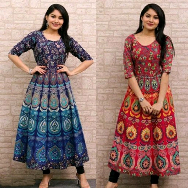 Fabric: Cotton Sleeve Length: Three-Quarter Sleeves Pattern: Printed Multipack: 2 Sizes: XL (Bust Size: 42 in, Length Size: 50 in)